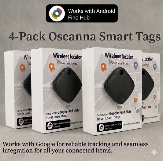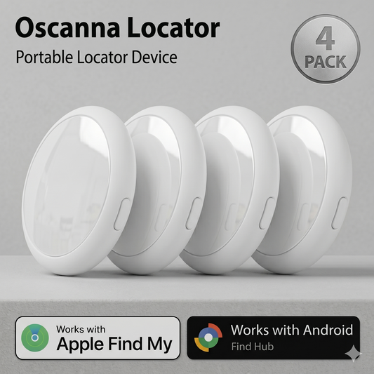 4 Pack Oscanna Bluetooth Tracker – Apple Find My Network, IP67 Waterproof, Real-Time Location, Pet & Item Finder