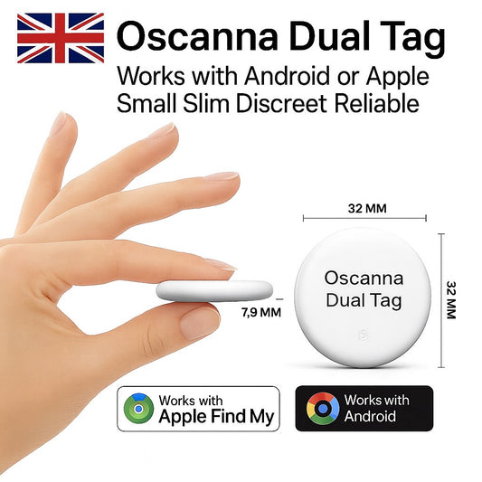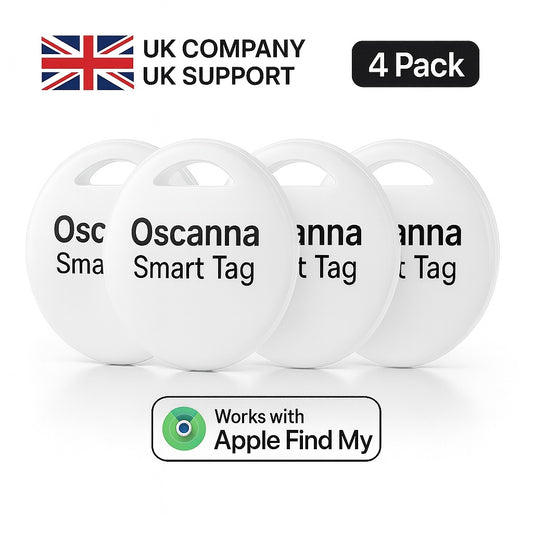 Keep Track of all your valuables,with Oscanna Tracker Tags. Works with Apple Findmy.
