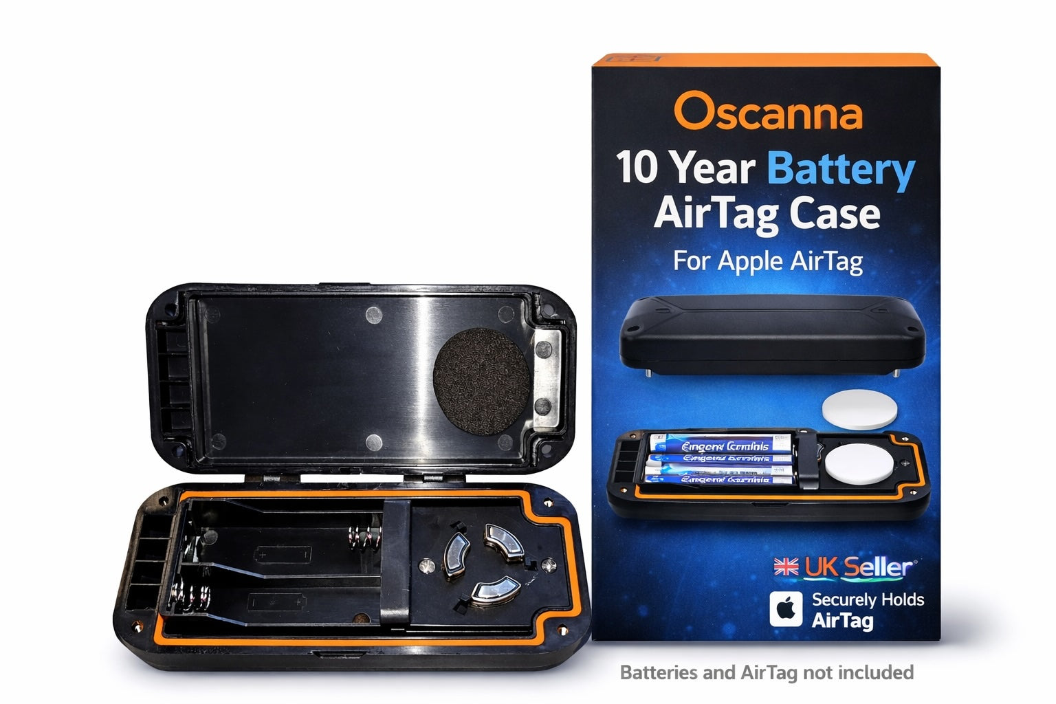 Oscanna Heavy Duty AirTag Case Dual AA 10 Year Battery IP69 Waterproof