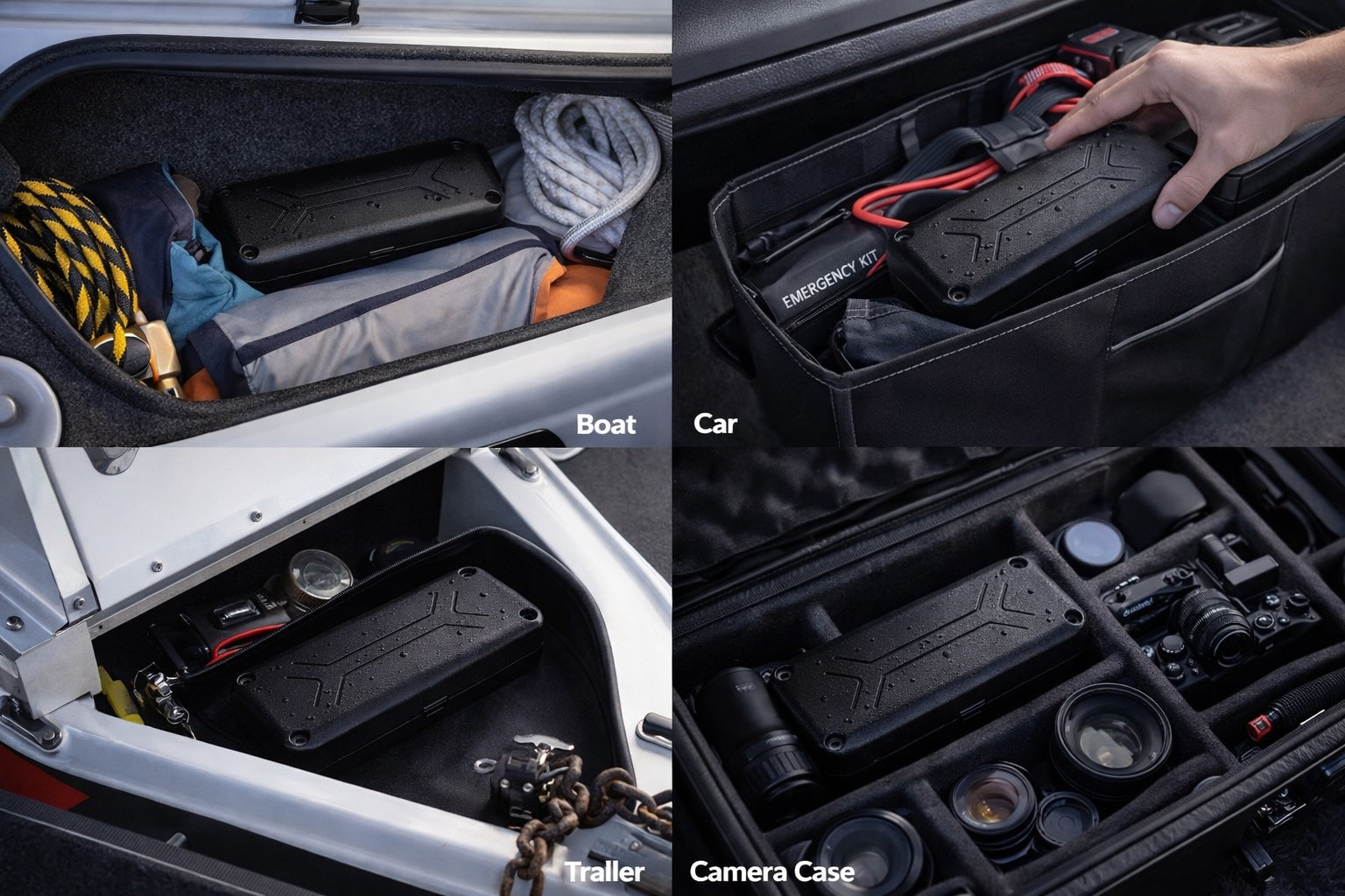 Attach or hide the case in your desired location (vehicle, trailer, boat, equipment, camera bag, etc.).